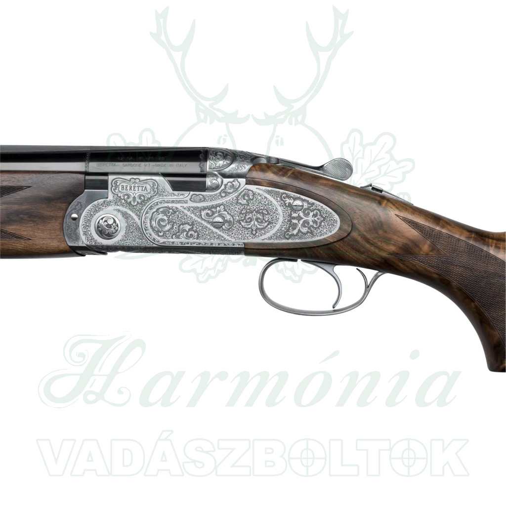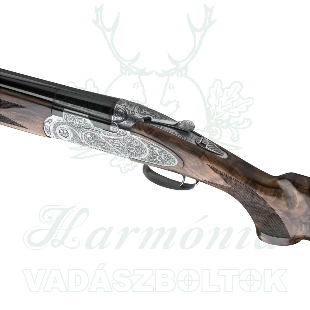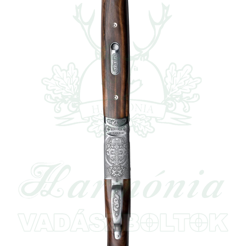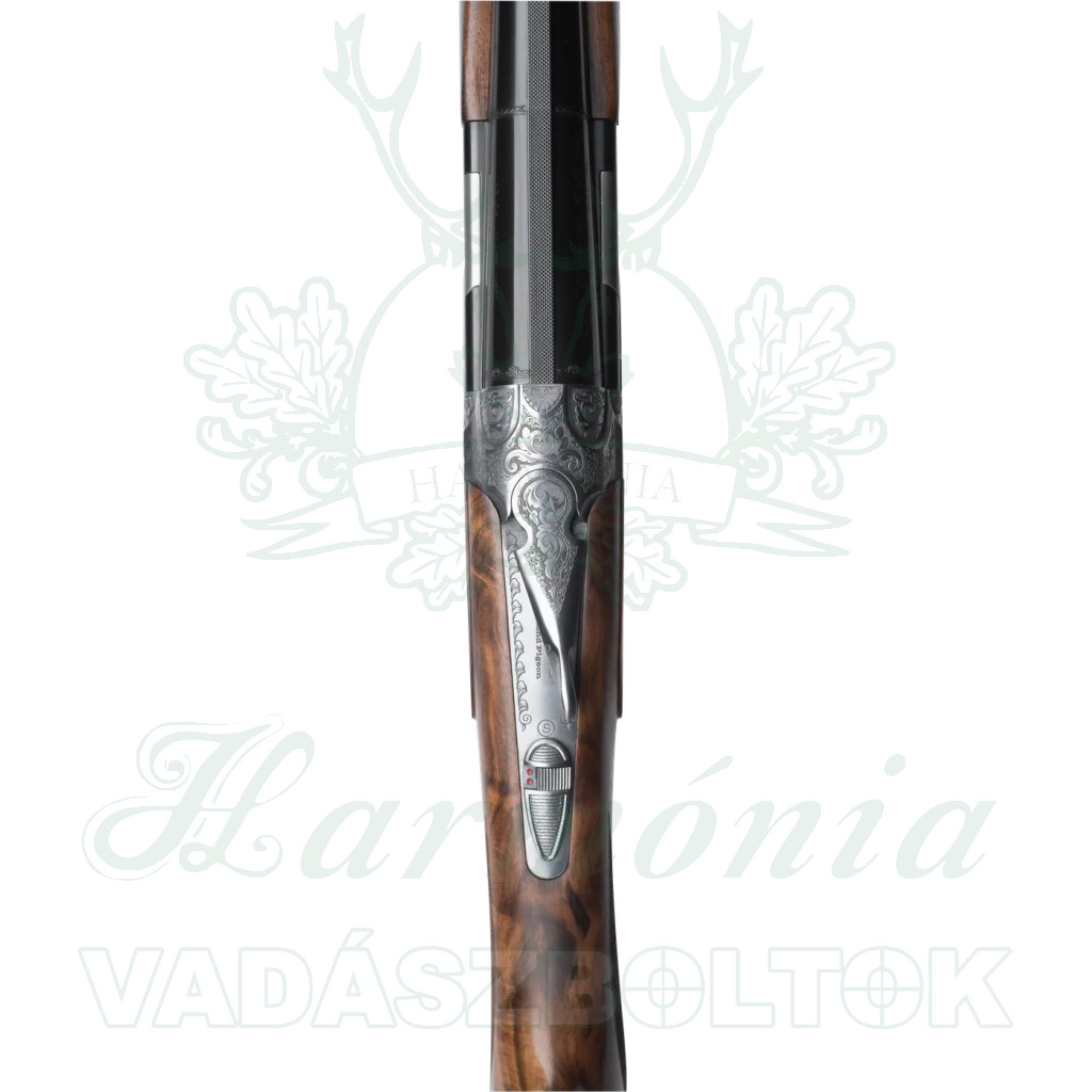 A rendkívül erős és megbízható, alacsony profilú Beretta zármechanizmus teljes oldalsó lemezekkel van kiegészítve, amelyeken kézzel vésett vadászjelenetek láthatók, a készítő aláírásával.